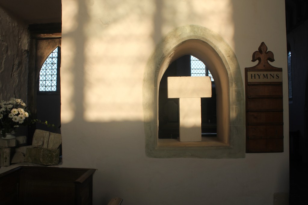 . . . . . . “Jim Roseveare is equally as rigorous but he concentrates on the materials from which the church has been constructed. His carefully considered sculptural works are clever interventions in which he sets up a dialogue between the fabric of the church and its iconography. He is interested in the minutiae; the smells, the textures, the quality of light, the grain of the wood the pile of the carpet and the simulacra of stains. The work encourages the viewer to reflect upon the quandary between things timesgone and things timesnow.”
